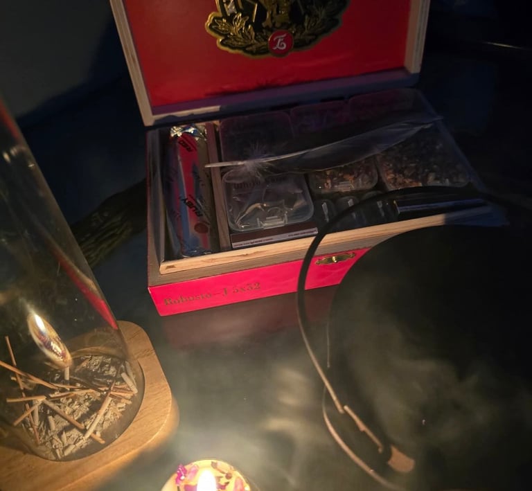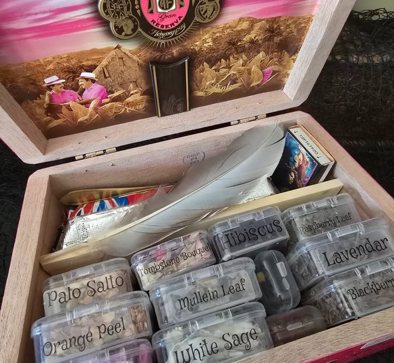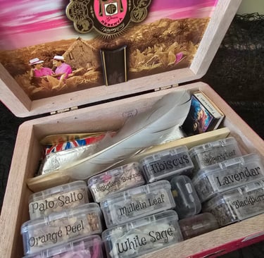 Our journey began on a quiet porch, in a simple moment of presence and peace. From that experience grew a passion for creating tools that help others slow down, focus, and reconnect. We craft and curate unique offerings such as aromatic cigar boxes for ritual and meditation, hand-tied willow and broom corn brooms, miniatures, and thoughtful sundries. Each piece is made or chosen with care, honoring tradition while inviting moments of awe, grounding, and reflection into everyday life.